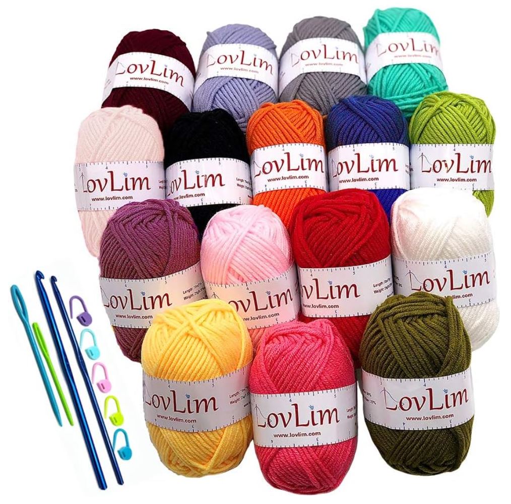 The LovLim Crochet Yarn Kit is a delightful and thoughtfully assembled bundle that’s ideal for beginners and seasoned crafters alike. With 16 vibrant DK-weight cotton yarn skeins, totaling over 1000 yards, this kit offers a great balance of quality, variety, and convenience.