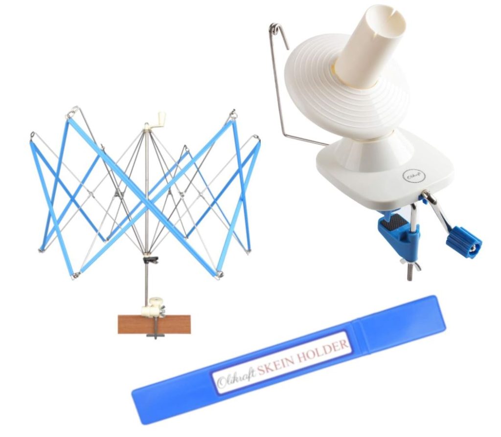 - Measuring tape, row counter, scissors, gauge ruler, seam ripper, needle caps